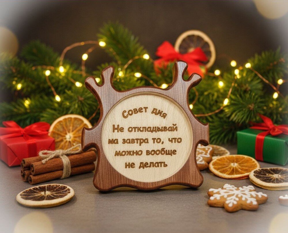 Оригинальная подставка под кружку изготовлена по авторским эскизам из натурального дерева, отличный подарок на Новый год, день рождения или «просто так».
