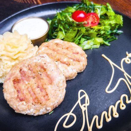 Сочный бифштекс из баранины и свинины, подаётся с яичницей,свежей зеленью и картофелем рёшти с орехами