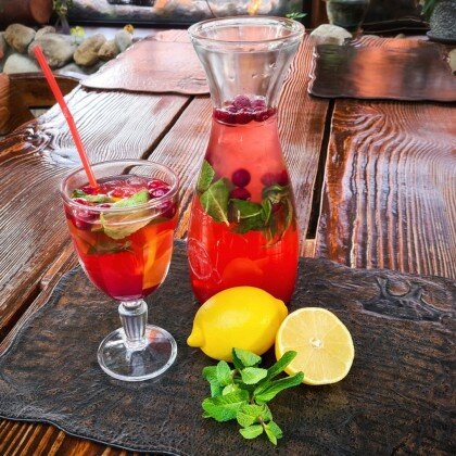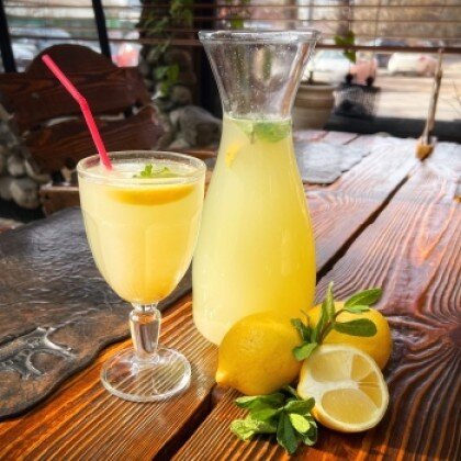 Фирменный квас на свежих лимонах с нотками имбиря. Крепость: 1-3 градуса